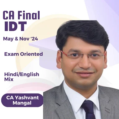 CA Final Indirect Tax (IDT) Exam-Oriented Classes by CA Yashvant Mangal for May 24 & Nov 24 Students in 115 Hours, 6/9 months validity and 1.5 times view. Google Drive, Pendrive Video Lectures available. 3 Volumes of Main Conceptual Learning Book, 2 Volumes of Questionnaire & MCQ book, 1 Summary Book And 1 IDT RamBan Chart Book will be provided.